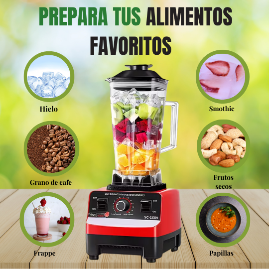 Con su motor de 2400W y tecnología avanzada, BlendMaster te ofrece un rendimiento continuo para preparar batidos, sopas y jugos en minutos, sin esfuerzo. ¡Cocina sin límites y con resultados profesionales!