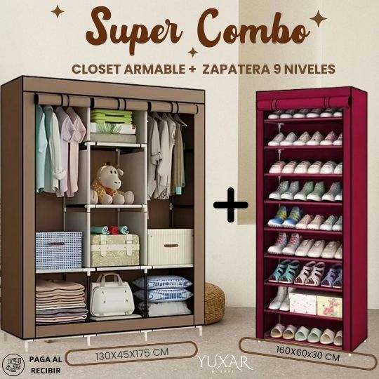 Con el Combo CasaLuxe™ (Armario + Zapatero), transforma tu habitación en minutos, sin taladros ni complicaciones. Organiza, protege y da estilo a tu espacio, manteniendo todo a la vista y al alcance.
